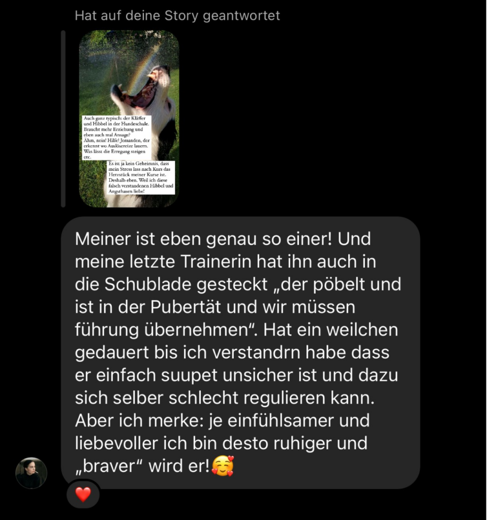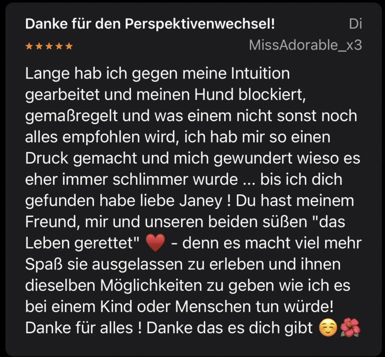 Es sind sehr oft die sensiblen Hunde, die schnell überfordert sind und ihr Verhalten dazu führt, dass sie in die Schublade von stur, dominant, hibbelig, schwer erziehbar… gesteckt werden. Mein Hund Kenny ist genau so ein Hund, nur dass er das Glück hatte bei mir zu leben und in seiner Überforderung gesehen wurde. Dass das Zusammenleben mit so einem Hund anstrengend ist und oftmals auf Unverständnis trifft, kenne ich zu gut. Ich rede also nicht nur über Schuhe, ich bin in ihnen gelaufen und kenne jeden Schritt. Wenn ich dir also Wissen vermittle, kannst du dir sicher sein, dass ich weiß wovon ich rede und es Gründe dafür gibt, warum mir gerade diese falsch verstandenen Hunde so am Herzen liegen.