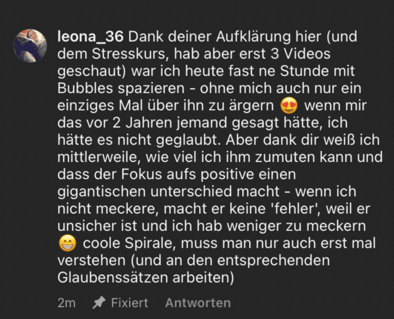 Nach den 60 Minuten kannst du genau erkennen, dass dein Hund gestresst ist und nicht stur – und warum er deine Unterstützung braucht.