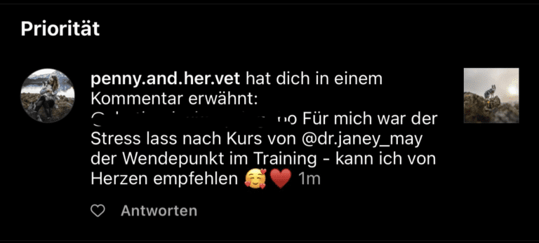 ⭐️⭐️⭐️⭐️⭐️ Dr. Janey May ist Tierärztin mit Spezialisierung auf Verhaltenstherapie und bedürfnisorientierte Hundetrainerin mit bald 20 Jahren Berufserfahrung. Sie hat mir ihrem Bestseller-Kurs „Stress lass nach!“ schon mehr als 1.000 Hund-Mensch-Teams zu einem entspannteren Miteinander verholfen und passend zu diesem Kurs im Kosmos Verlag ein Buch geschrieben.