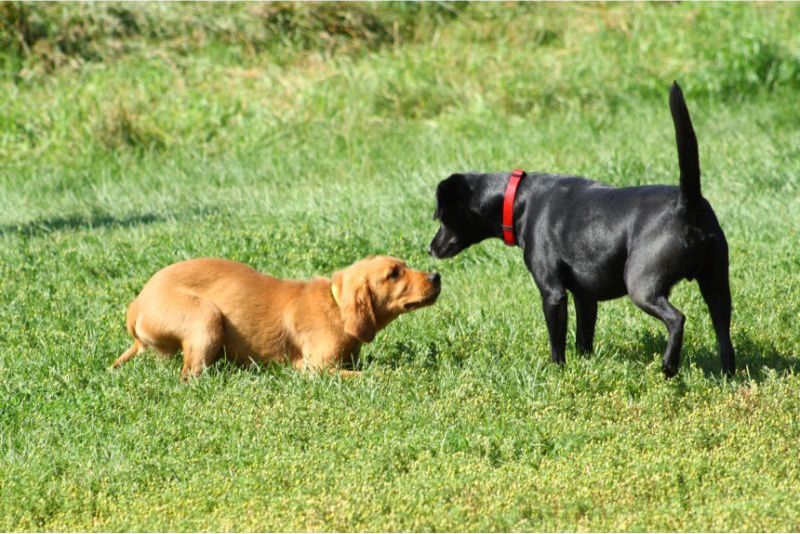 Die passive Demut kann bei domestizierten Hunden häufig beobachtet werden, wenn es keine direkte Bedrohung gibt, der Hund aber gerade unsicher oder ängstlich ist.